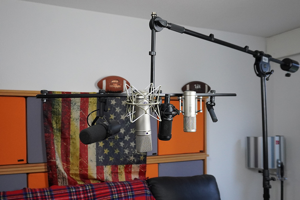 Mikrofon Bar für mehrere Mikrofone, um beispielsweise X / Y Aufnahmen zu machen. Die Mikrofon Bar hat ein Fassungsvermögen von bis zu sechs Mikrofonen.